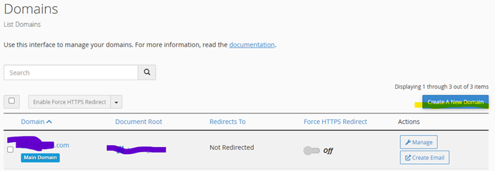 3. Click on Domains to be redirected to a page where you will see your main domain name.Â